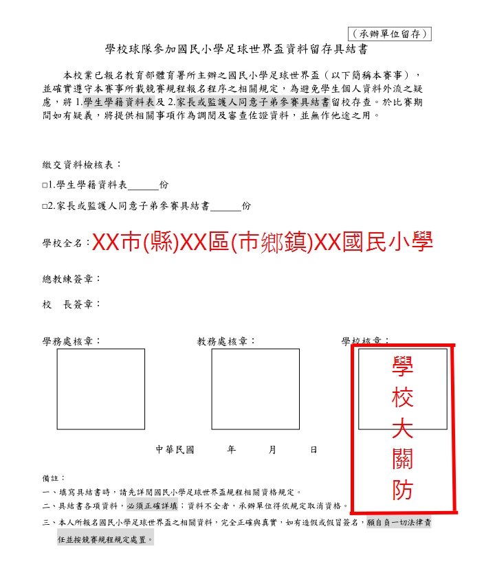 3. 資料留存具結書(學校大關防及相關人員職章)