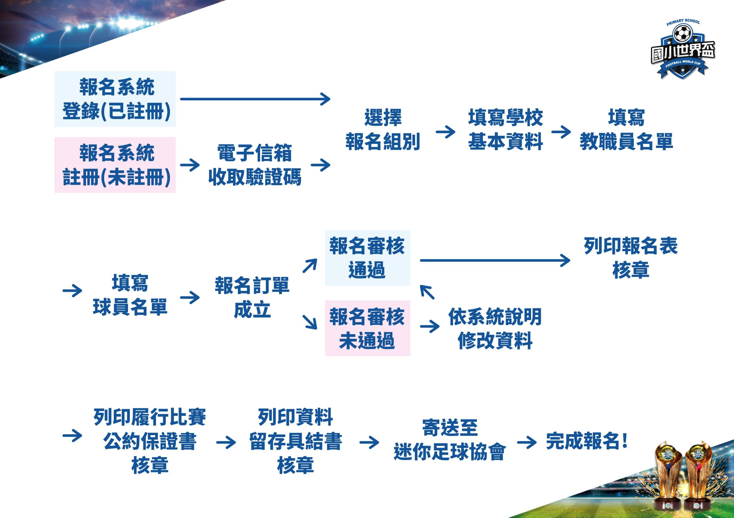 以掛號郵寄(郵戳為憑,逾期概不受理)至承辦單位-迷你足球協會(台北市中山區玉門街1號)