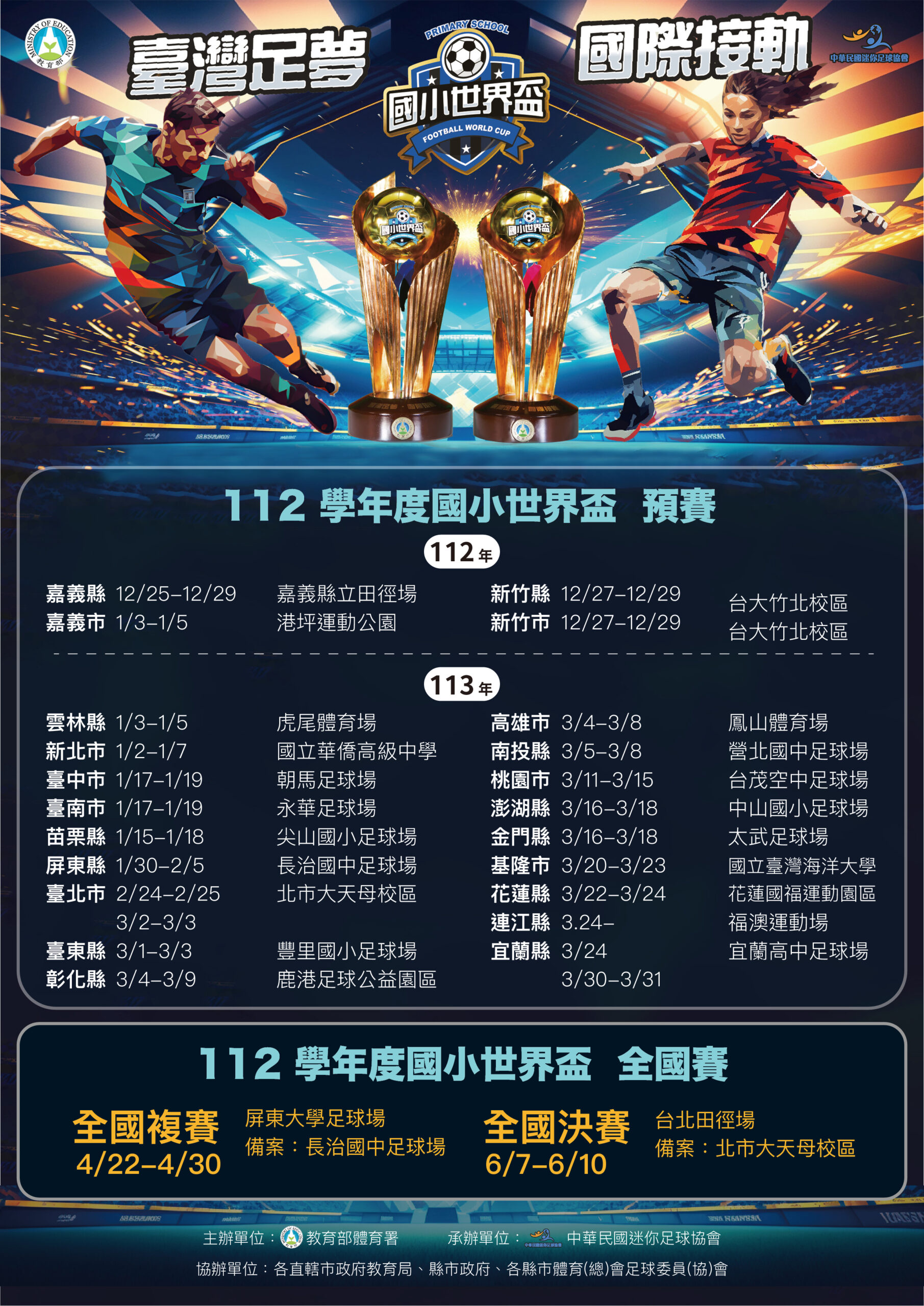 【賽事公告】112學年度國民小學足球世界盃_各縣市期程