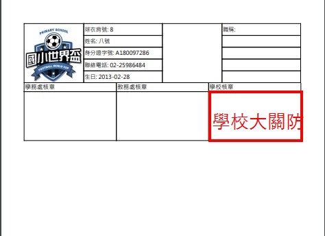 1. 報名表一份(學校大關防及相關人員職章)