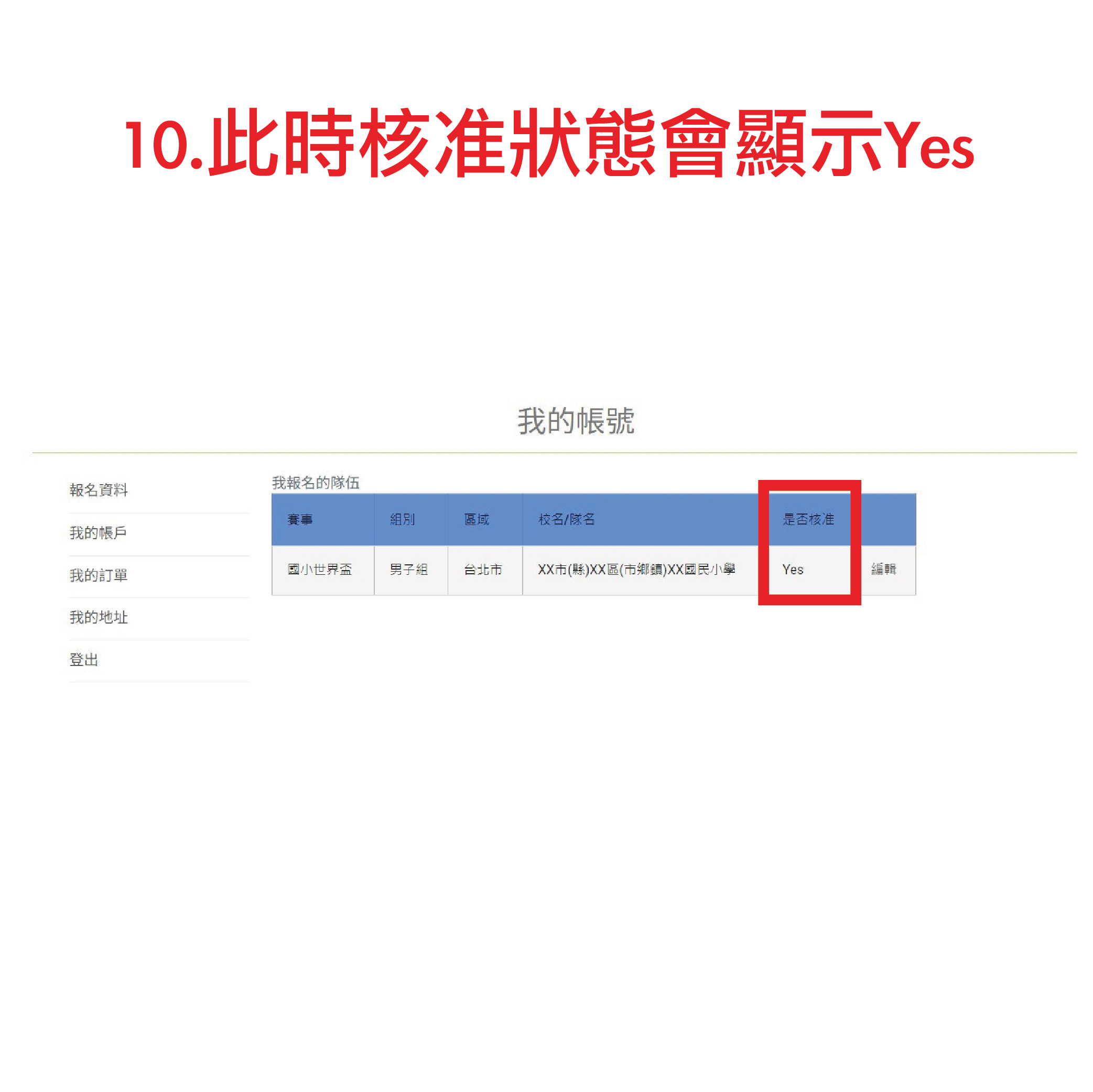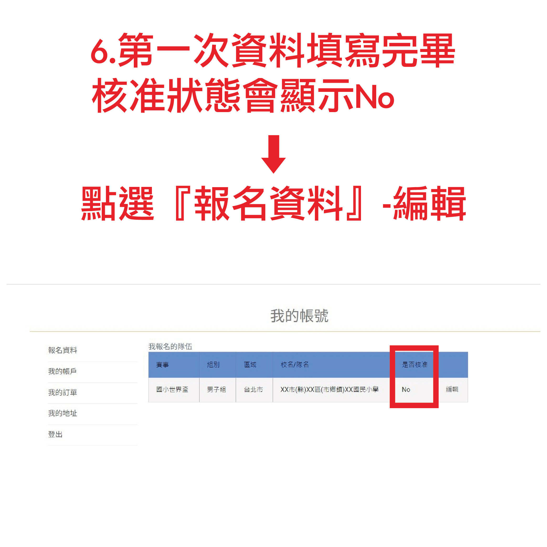 A2:第一次會顯示NO,需按編輯送出報名後,報名狀態將會顯示YES,即可下載列印報名表