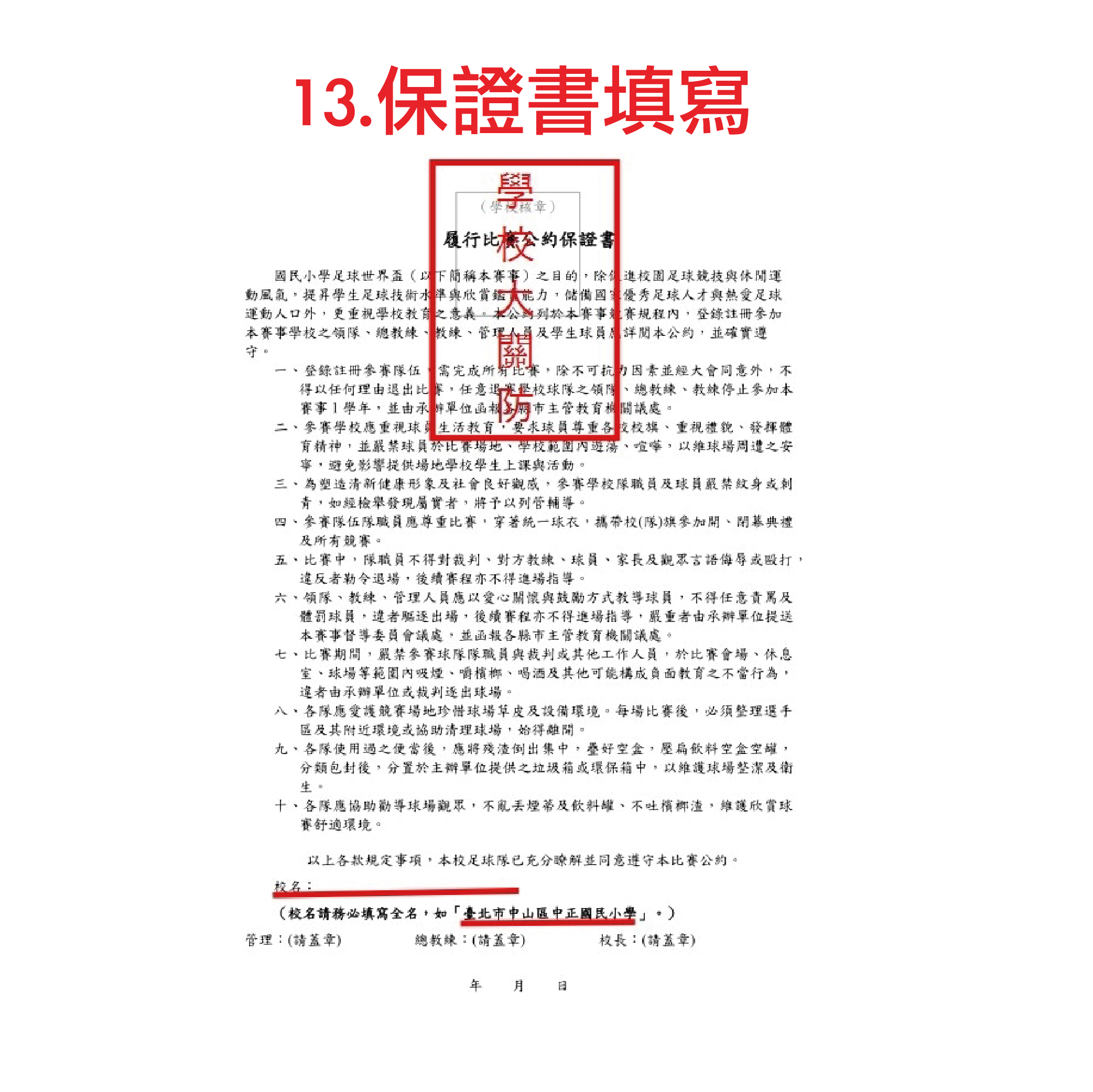 2. 履行比賽公約保證書一份(學校大關防及相關人員職章)