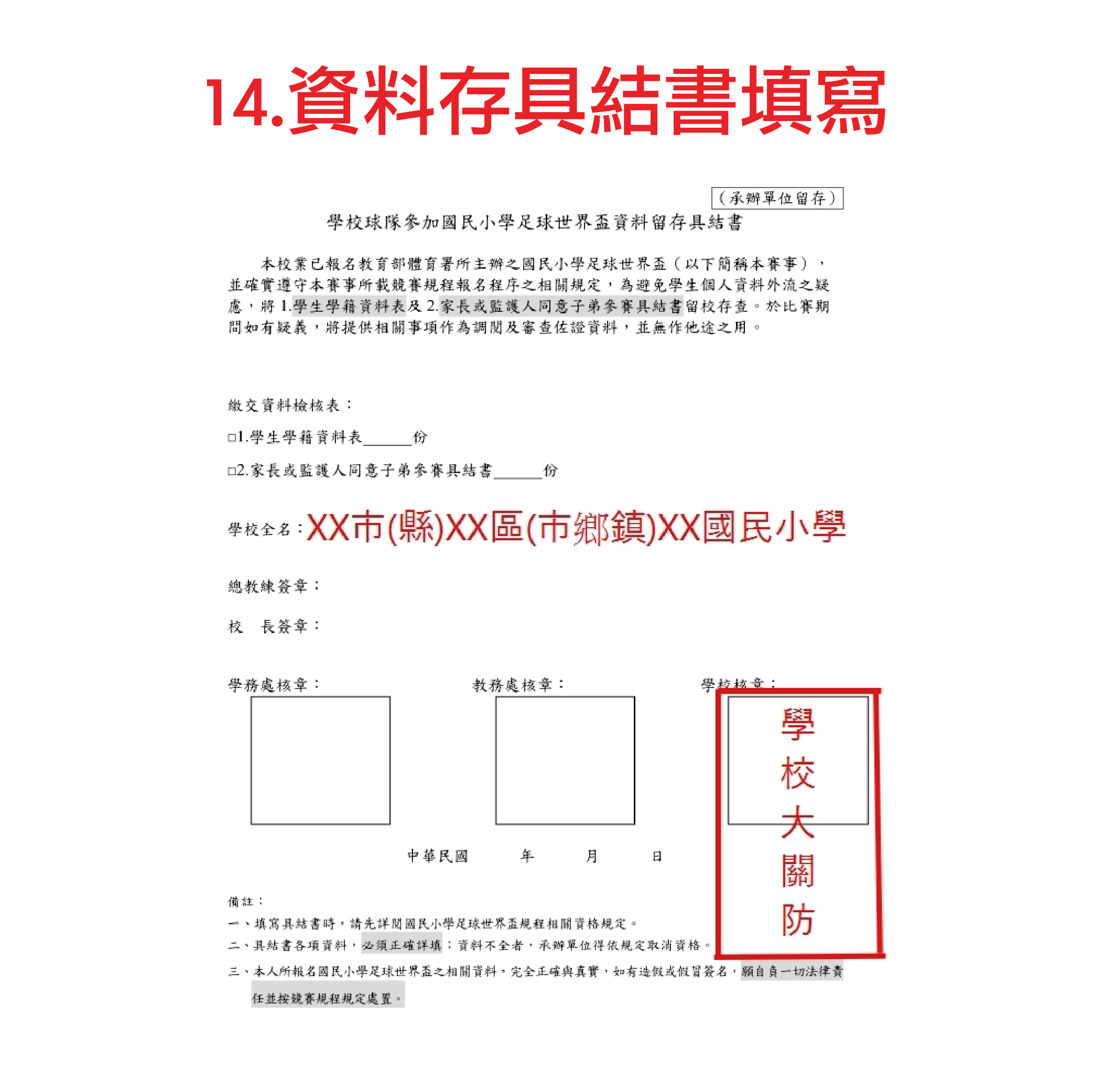 3. 資料留存具結書(學校大關防及相關人員職章)