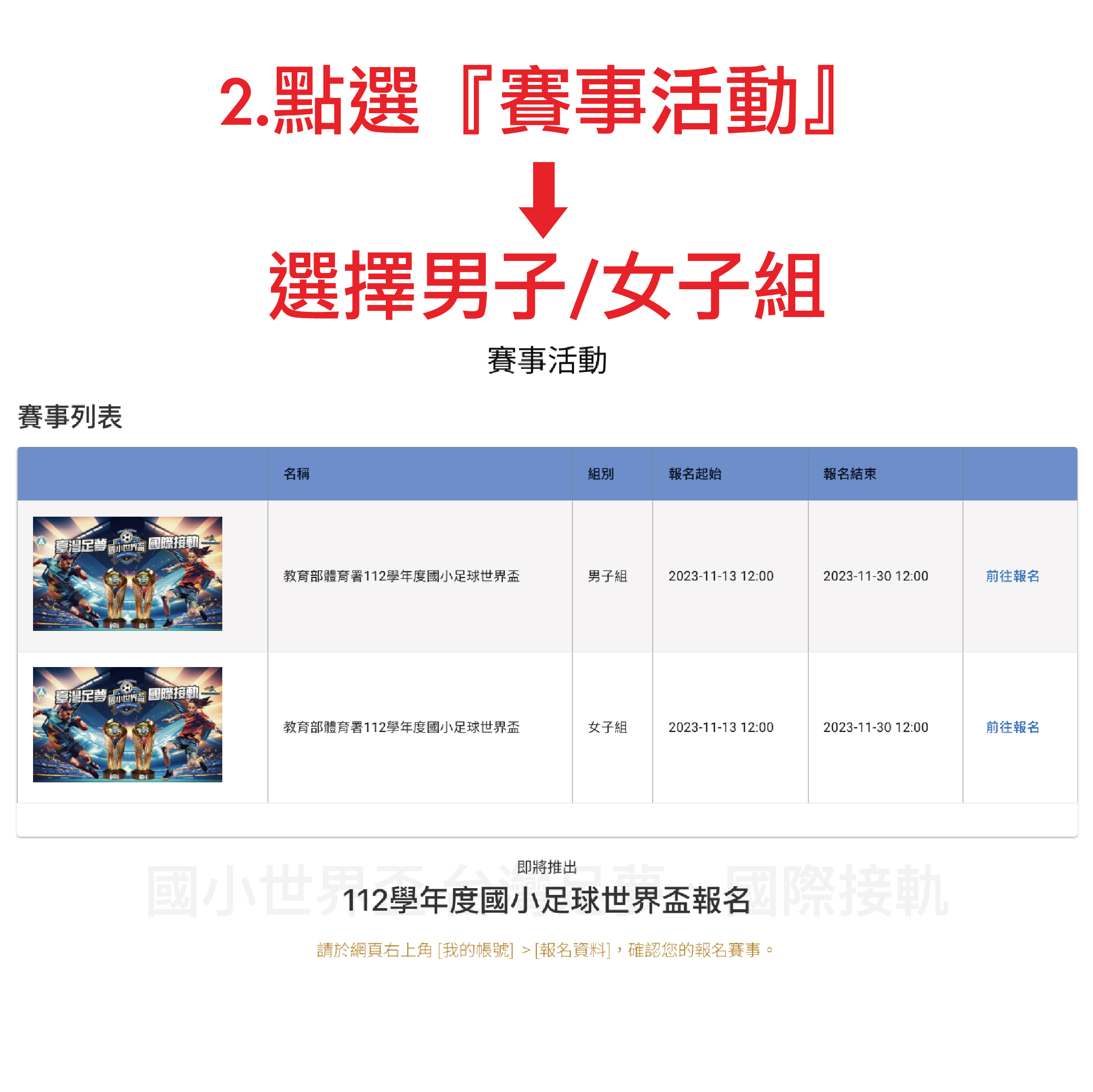 【賽事公告】112學年度國民小學足球世界盃_報名流程